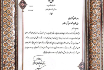 Dr. Zahra Esfandiari, faculty member of the Nutrition and Food Security Research Center, attended the event as a representative of Dr. Shirani, President of the University. She received the Certificate of Appreciation from the Governor of Isfahan in recognition of her individual contributions, including participation in drafting three national standards (derived from an approved research project by the Vice-Chancellor for Research and Technology) and her active role in related commissions and committees.